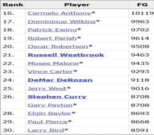 据官方统计,库里在本场比赛超越了加里-佩顿,成为了NBA历史上运动战进球数第26多的球员。在他身前的是杰里-韦斯特,两者大概有300记进球左右的差距。