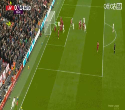 第33分钟,森林开出角球,穆里略抽射破门!利物浦0-1落后!