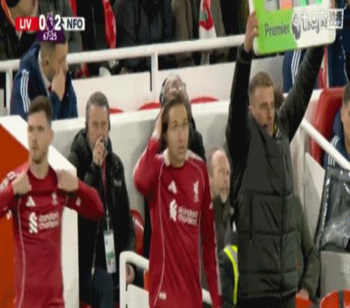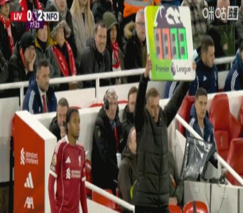 第90+2分钟,主场0-3落后森林,镜头给到斯洛特