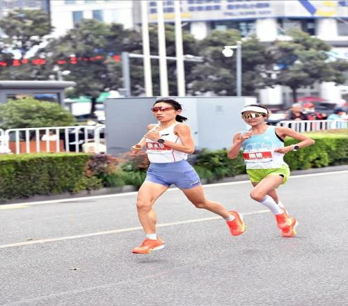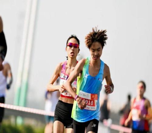 半程过后,王岢掉队,但张水华依旧专注向前。这是她第二次来常州,去年比赛时,她觉得这里气温有点冷,对从南方来的她不太友好。她一直觉得,自己怕冷不怕热。而今年,气温比去年要高一点,虽然也有风,但一切在掌控中。